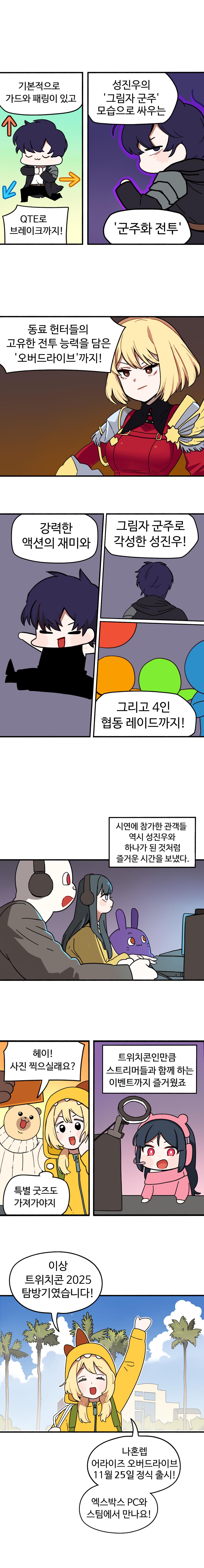 [스콜라의 게임찍먹] '나 혼자만 레벨업: 어라이즈 오버드라이브' 트위치콘 2025 탐방기 콘텐츠 · 펀&조이 2025.11.04 url 공유하기 페이스북 트위터 <p style="text-align: center;"><img alt="" src="https://channeln.gcdn.netmarble.com/channeln/Upload/3f30f42b-964d-4f85-9271-b79bea600d51.jpg" style="height: 5000px; width: 700px;" /><br /> <img alt="" src="https://channeln.gcdn.netmarble.com/channeln/Upload/ebceeddf-47f1-4c5f-b0db-58c0548fb749.jpg" style="height: 5770px; width: 700px;" /><br /> <img alt="" src="https://channeln.gcdn.netmarble.com/channeln/Upload/3ea80aba-aa57-4ba4-8a26-f2aed9dd08ba.jpg" style="height: 5380px; width: 700px;" /></p> <p style="text-align: center;">스콜라의 트위치콘 2025 탐방기<br /> '나 혼자만 레벨업: 어라이즈 오버드라이브' <br /> 현장 스토리를 웹툰으로 살펴보세요!<br /> 11월 25일 정식 출시! 엑스박스 PC와 스팀에서 만나요.</p> <p style="text-align: center"><img height="300" src="https://channeln.gcdn.netmarble.com/channeln/Upload/495cd4b9-bb99-4a76-8169-4261635d7515.png" width="500" /></p> 스콜라의 트위치콘 2025 탐방기 '나 혼자만 레벨업: 어라이즈 오버드라이브' 현장 스토리를 웹툰으로 살펴보세요! 11월 25일 정식 출시! 엑스박스 PC와 스팀에서 만나요.