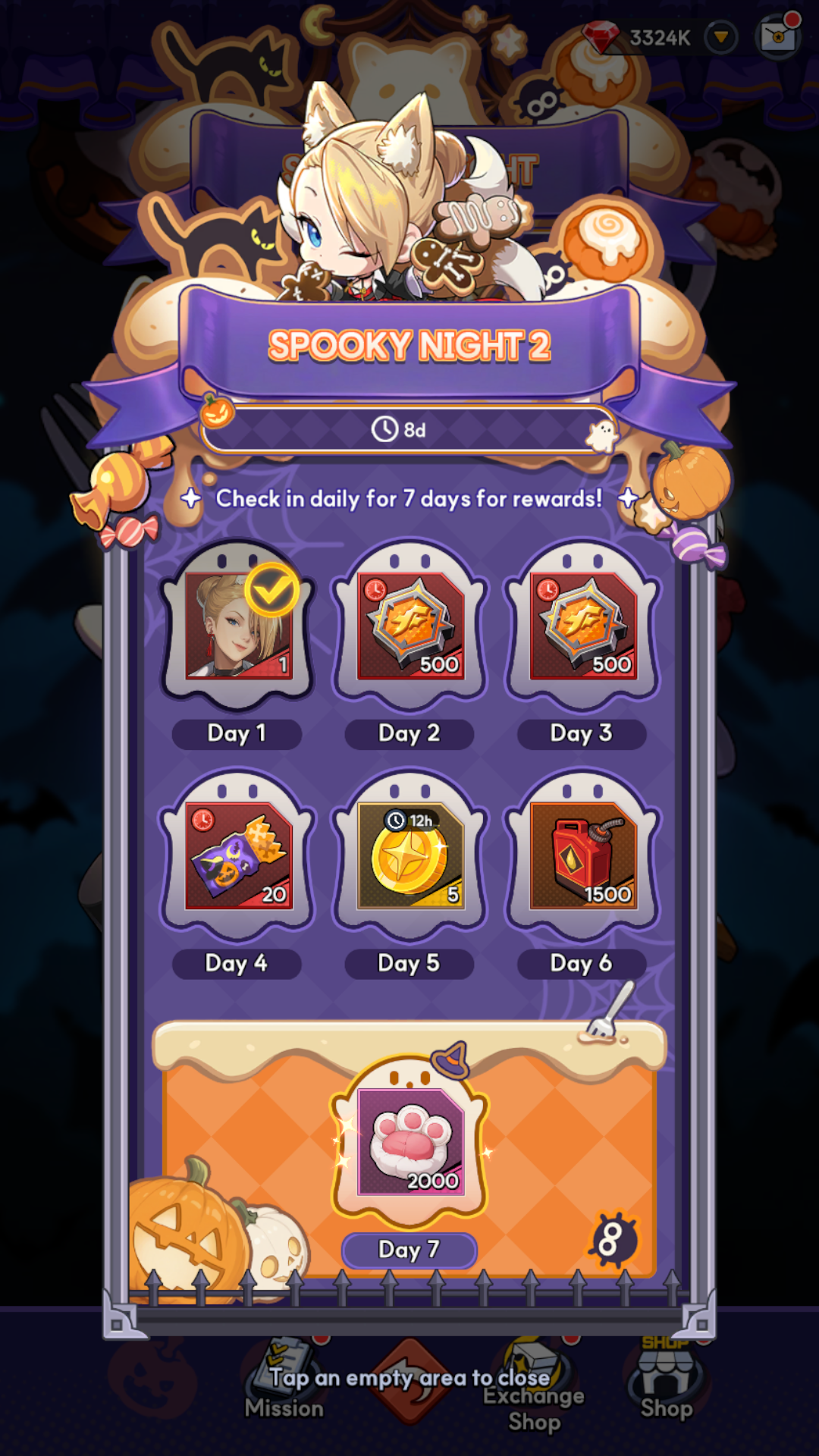 You’ll get 500 Spooky Fighter Tokens on Day 2 and another 500 on Day 3, for a total of 1,000 Spooky Fighter Tokens.