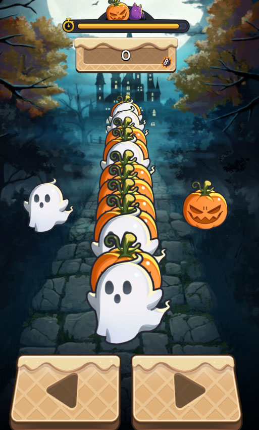 In this mini-game, you’ll need to quickly sort incoming ghosts and pumpkins left or right within a time limit.