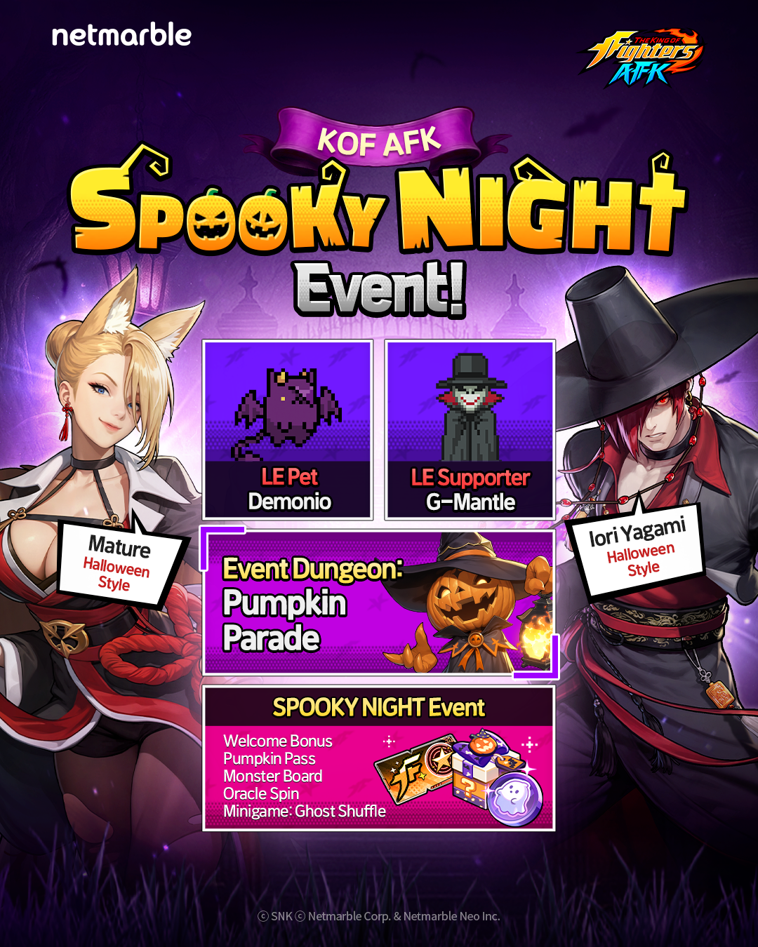 The Spooky Night event introduces Halloween-style versions of Iori Yagami and Mature.