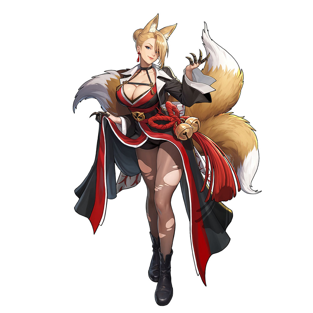 On top of that, she boosts her attack by 15% when above 40% HP and 30% when above 70% HP, so staying alive keeps her hitting harder! As her skill name hints, she’s got a fox yokai-inspired look, with fox ears and a tail, adding a fun twist to her icy villainess vibe.
