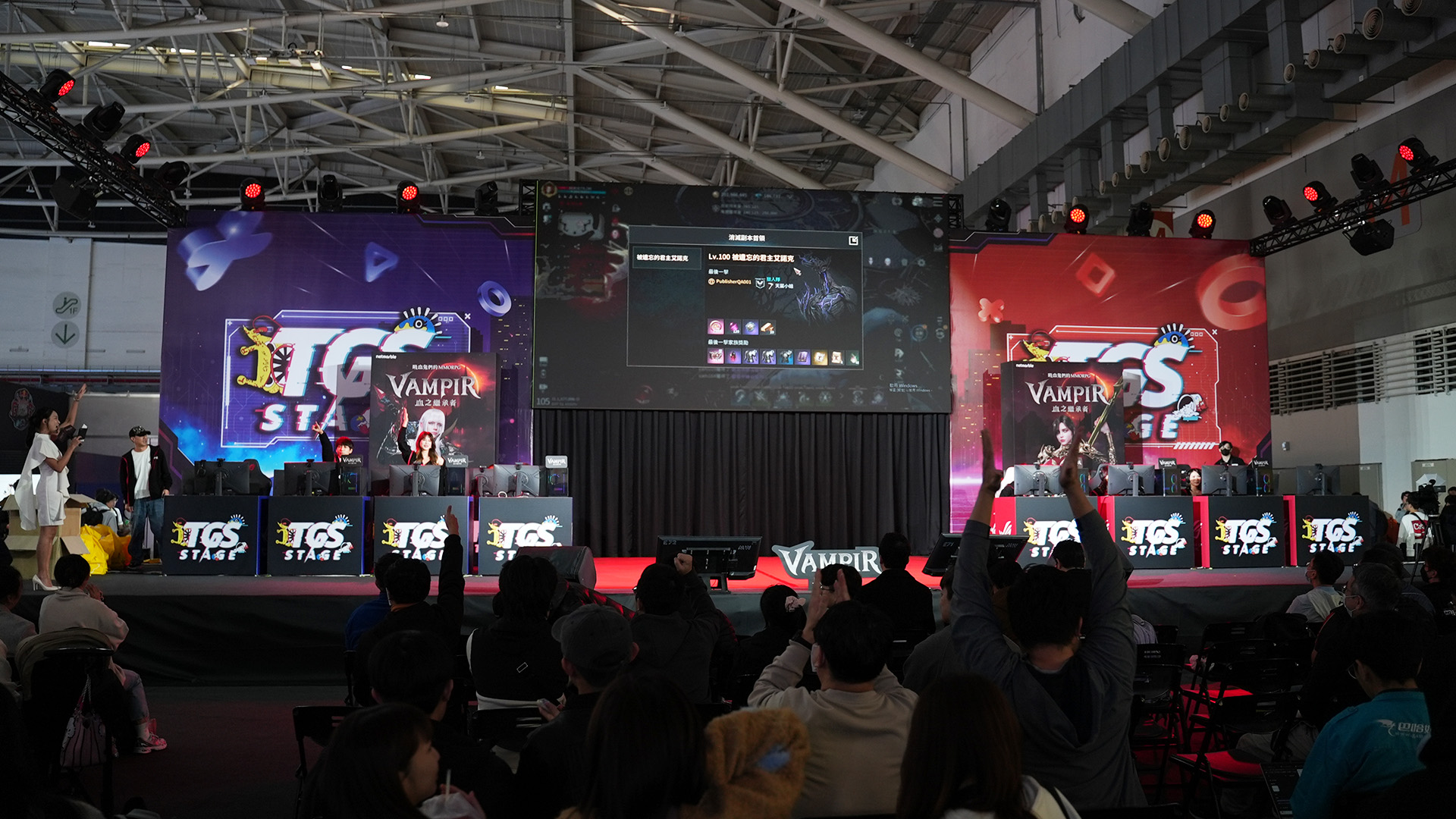 在遊戲介紹結束後,現場隨即展開了一場精彩的 PvP 活動。本次對抗賽由 8 位台灣知名創作者與現場隨機選出的 2 位玩家,共計 10 人共同參與。這 10 位參賽者分為兩隊(每隊 5 人),進入了《VAMPIR:血之繼承者》獨有的 PvPvE 戰場「蓋亨納(Gehenna)」,挑戰強大的魔王。