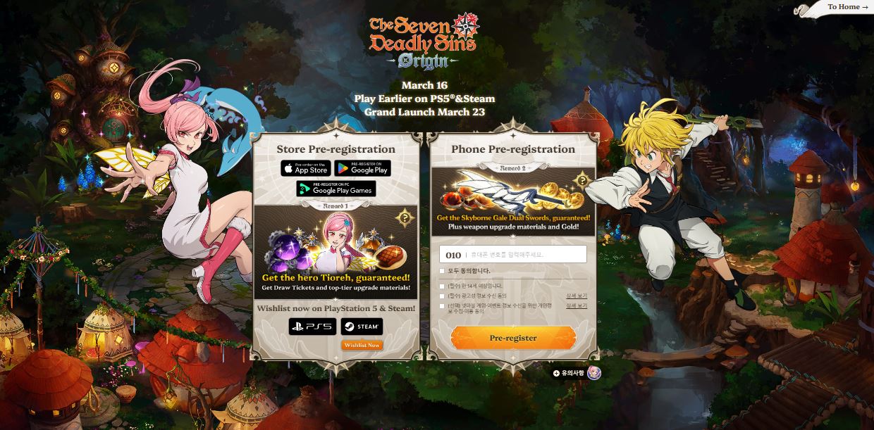 Pre-registration for <The Seven Deadly Sins: Origin> is currently underway. You can easily participate by entering your mobile number on the official website. For mobile, pre-registration is available on the Apple App Store and Google Play Store, while the PC version can be registered via Google Play Games.
