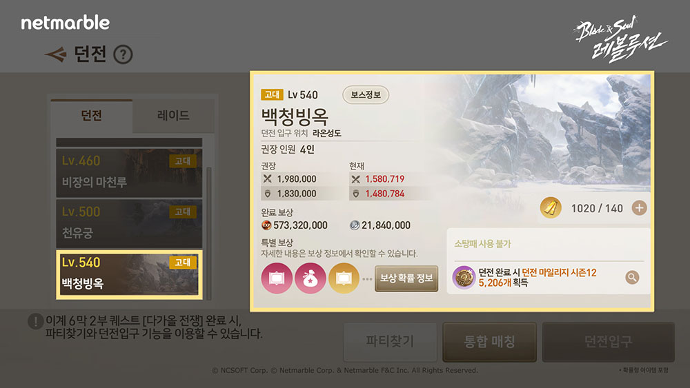 ‘블레이드&소울 레볼루션’ 8월 26일 업데이트 핵심은 신규 던전 ‘백청빙옥’입니다. 지난 7월 하순 공식 포럼에 올라온 개발자 노트에서 처음 소개됐었죠. 4명이 한 팀이 되어 공략하는 던전으로 전설/고대 두 가지 난이도로 나뉘어져 있습니다. 최고 난이도인 고대 난이도 기준 권장 종합 공격력은 1,980,000이며 권장 종합 방어력은 1,830,000입니다.