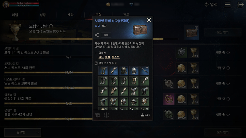 대부분 MMORPG에서는 무·소과금 플레이어가 고급, 희귀 장비를 섞어 쓰는 기간이 매우 긴 편인데 반해, 이 ‘뱀피르’에서는 레벨업, 퀘스트 클리어 문턱이 높아지는 45레벨 무렵에 장비(장신구 제외)를 희귀 등급 이상으로 맞출 수 있습니다. 32레벨 사냥터부터 희귀 장비를 직접 파밍할 수 있으며, 그 이전 25레벨 이상 사냥터에서도 일정 확률로 희귀 등급 아이템이 나오는 ‘보급형 장비 상자’가 드랍되기에 수집 난이도가 상당히 낮은 편이죠.