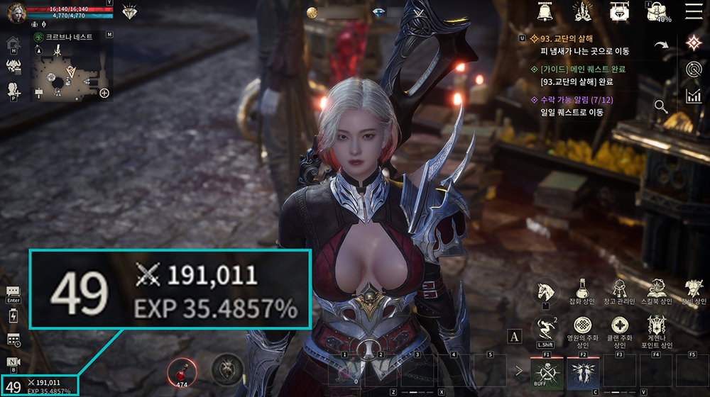 우선 뱀파이어가 된 자신의 실력을 두 눈으로 확인해보도록 하죠. ‘뱀피르’에서는 다른 MMORPG와 같이 ‘전투력’ 수치를 통해 캐릭터 강함을 한 눈에 가늠할 수 있는데요. 보통 이 캐릭터 전투력은 화면 좌측 하단에서 표시되죠.