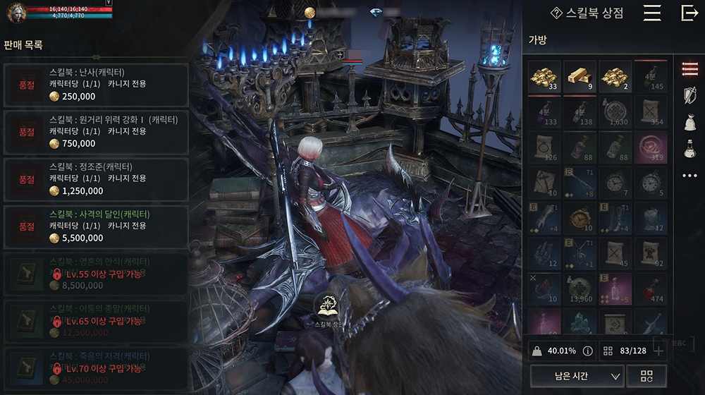 영원의 주화 상인에게서 구매할 수 있는 스킬은 90레벨 이상이어야 하기에 획득 난이도가 꽤 높은 편입니다. 클랜 주화 상인에게는 일부 패시브 스킬과 함께 스킬 제작에 필요한 ‘스킬북 페이지’도 구매할 수 있으며, 스킬북 상인에게선 다수의 클래스별 전용 스킬북을 살 수 있습니다. ‘골드’로 구매 가능하다는 점에서 스킬북 상인이 가장 만만해 보이는데요. 45레벨 이상의 스킬북부터 가격이 상승하므로 골드 획득 및 소비에 신경 쓰는 걸 잊지 마세요!