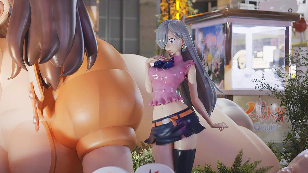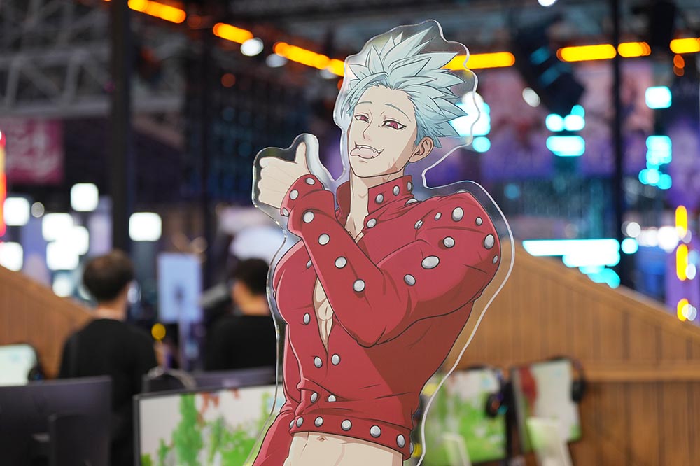 이러한 거대 조형물에 시선이 끌려 부스로 다가가면 멜리오다스와 엘리자베스, 킹, 반, 티오레 등 원작 등장인물 및 게임 오리지널 캐릭터들의 스태츄, 아크릴 등신대도 만나볼 수 있습니다. 이러한 캐릭터 조형물 주변이 바로 핵심 포토 스팟! 방문하신다면 꼭 기념 사진을 남기시길 바랍니다.