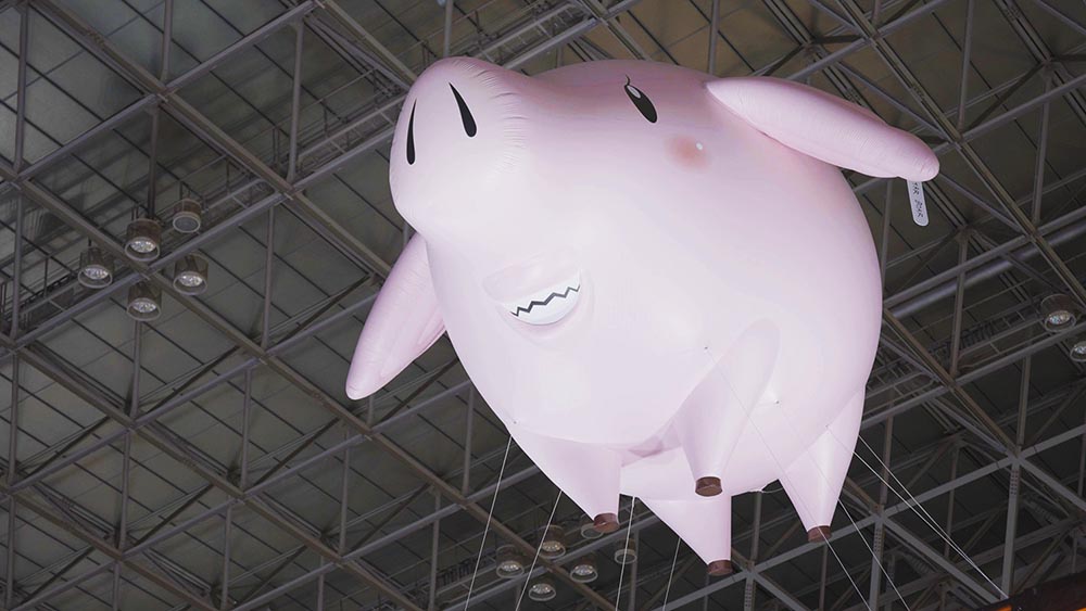 부스 위를 보면 천장에 매달린 분홍색 무언가를 보실 수 있는데요