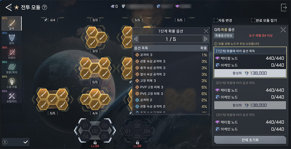 ‘전투 모듈’ 모든 카테고리가 확장됐습니다.