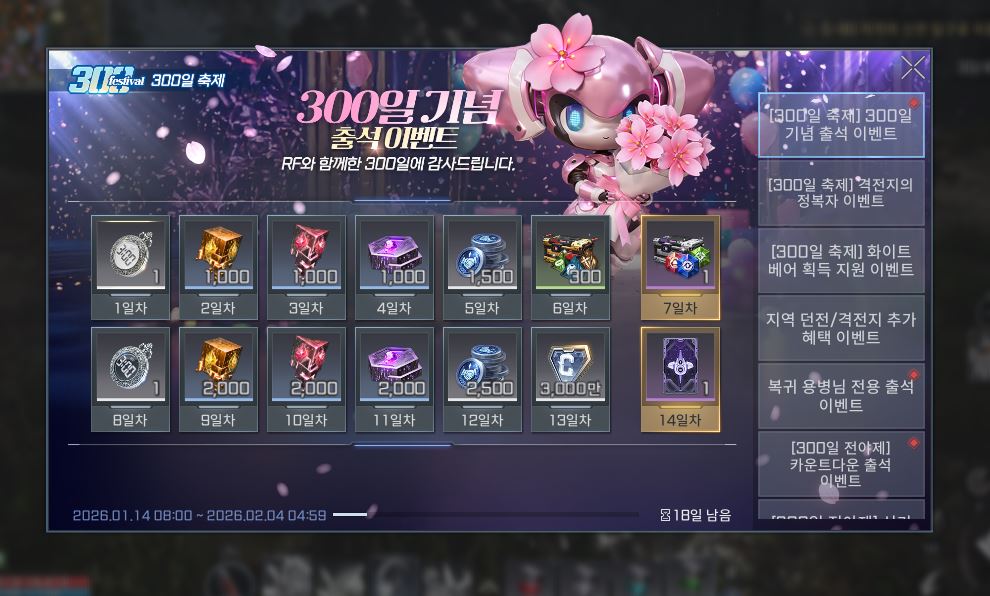 1월 말은 ‘RF 온라인 넥스트’ 론칭 300일입니다. 300일 기념 출석 이벤트, 격전지의 정복자 이벤트 등 풍성하게 진행되고 있는데요. 새해를 맞이하는 ‘RF 온라인 넥스트’와 함께 노바스 행성에서 활기찬 모험을 즐기시길 바랍니다.