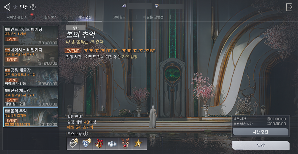 신규 파티 던전 ‘기억의 전장’ 입장 대기 화면