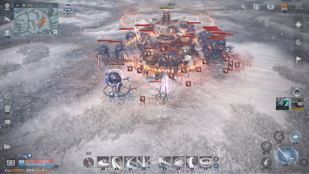 알베른 던전에서 사냥을 해본 경험이 있는 용병이라면, 노바스 행성과 외행성 사이 환경 차이가 크다는 것을 알고 계실 겁니다. 실제로 알베른은 노바스보다 강력한 중력이 작용하고 있으며, 이러한 설정을 바탕으로 던전에는 ‘초중력’이라는 행동 속도 디버프가 활성화되어 있죠. 우샤스 역시 고유 환경 디버프가 활성화되어 있는데요. 바로 앞에서 한 차례 언급한 바 있는 ‘크림슨 침식’입니다.