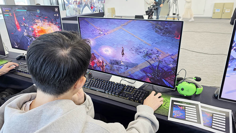 '나 혼자만 레벨업: 카르마'는 이번 지스타 2025를 통해 처음 공개하는 신작이다보니, 인플루언서들에게는 처음 시연해보는 자리였죠. 격렬한 조작으로 스테이지에 출몰하는 몬스터들을 호쾌하게 처치하고, 클리어 시 나타나는 특성들의 설명을 자세히 살펴보며 고민하는 모습을 보였습니다.