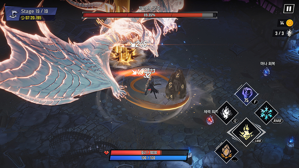 게임을 직접 체험해보면서 굉장히 간단한 조작에 다채롭고 화려한 액션을 즐길 수 있는 게임이라 느꼈는데요. 대시, 일반공격, 특수공격 총 3가지 버튼 조합에 따라 여러가지 연계 공격을 할 수 있었고, 특성을 획득하면 이러한 연계 공격이 더더욱 확장됐죠. 또, 그림자 소환, 궁극기 등 강력한 기술을 적재적소에 사용하는 과정에서 전략성까지 엿볼 수 있었습니다.