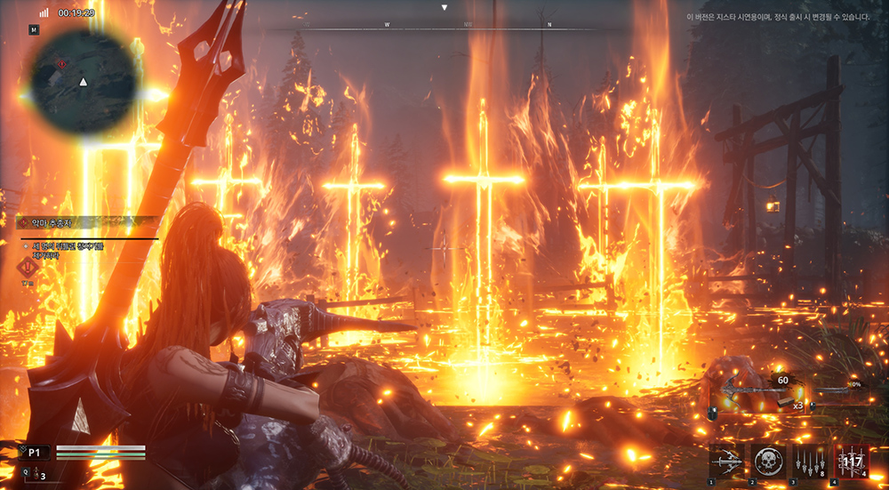 플레이어는 성진우가 되어 원하는 무기를 선택한 후, 쿼터뷰 시점 전장에서 전투를 진행하게 됩니다. 전장에 등장하는 적들을 모두 처치하고 나면 각기 다른 힘을 보유한 ‘이타림의 사자'라는 존재가 나타나 3가지 특성 제시하는데요. 이 중 하나를 고르면 다음 스테이지로 넘어가게 됩니다. 지스타 시연 버전에서는 5가지 무기와 각기 다른 능력을 지닌 7명의 이타림의 사자가 내려주는 특성들을 이용해볼 수 있죠.