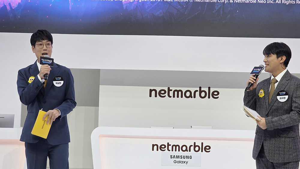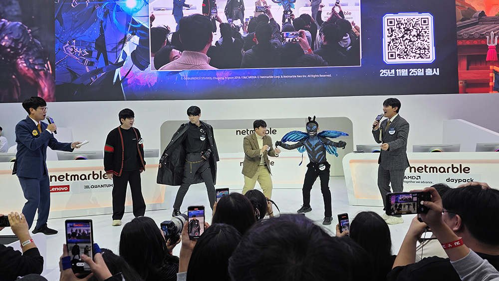 넷마블 부스 중앙 무대에는 인기 인플루언서들과 함께하는 다채로운 무대 프로그램이 진행되고 있는데요. 오는 11월 25일 정식 출시 예정인 액션 RPG ‘나 혼자만 레벨업: 어라이즈 오버드라이브’의 무대도 만나볼 수 있었죠. ‘나 혼자만 레벨업: 어라이즈 오버드라이브’ 무대 행사는 14일과 15일, 각각 한 차례씩 진행되는데요. 그럼 14일에 진행된 ‘2 vs 2 타임어택 4인 보스레이드’ 무대 현장 모습을 함께 살펴보도록 하겠습니다.