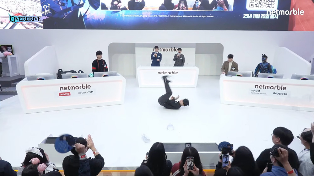 이번 무대 프로그램의 소재는 ‘협동 전투’였습니다. ‘나 혼자만 레벨업: 어라이즈 오버드라이브’의 핵심 콘텐츠 중 하나로, 다른 플레이어와 함께 강력한 보스급 마수에 도전하는 방식이죠. 관람객들은 협동 전투의 진행 방식과 재미를 두 눈으로 확인하면서 승부 및 MVP 예측 이벤트에 참여해 푸짐한 상품도 받을 수 있었습니다.