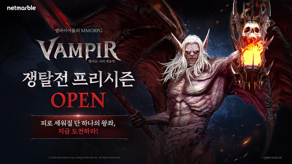 한편, 지난 8월 26일 출시된 <뱀피르>는 국내 모바일게임의 수준을 한 단계 끌어올렸다는 평가를 받은 <리니지2 레볼루션>의 주요 개발진이 참여한 신작 MMORPG다. 뱀파이어 컨셉과 다크 판타지풍의 중세 세계관이라는 차별화된 소재로 모바일과 PC 플랫폼으로 서비스 중이다.
