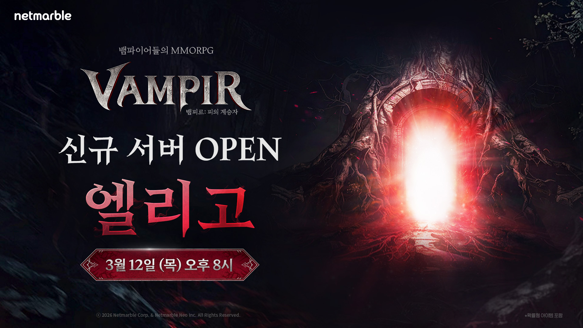 넷마블(대표 김병규)은 뱀파이어 컨셉 MMORPG <뱀피르>의 글로벌 신규 서버 ‘엘리고’를 오늘(12일) 오후 8시에 추가한다고 밝혔다.