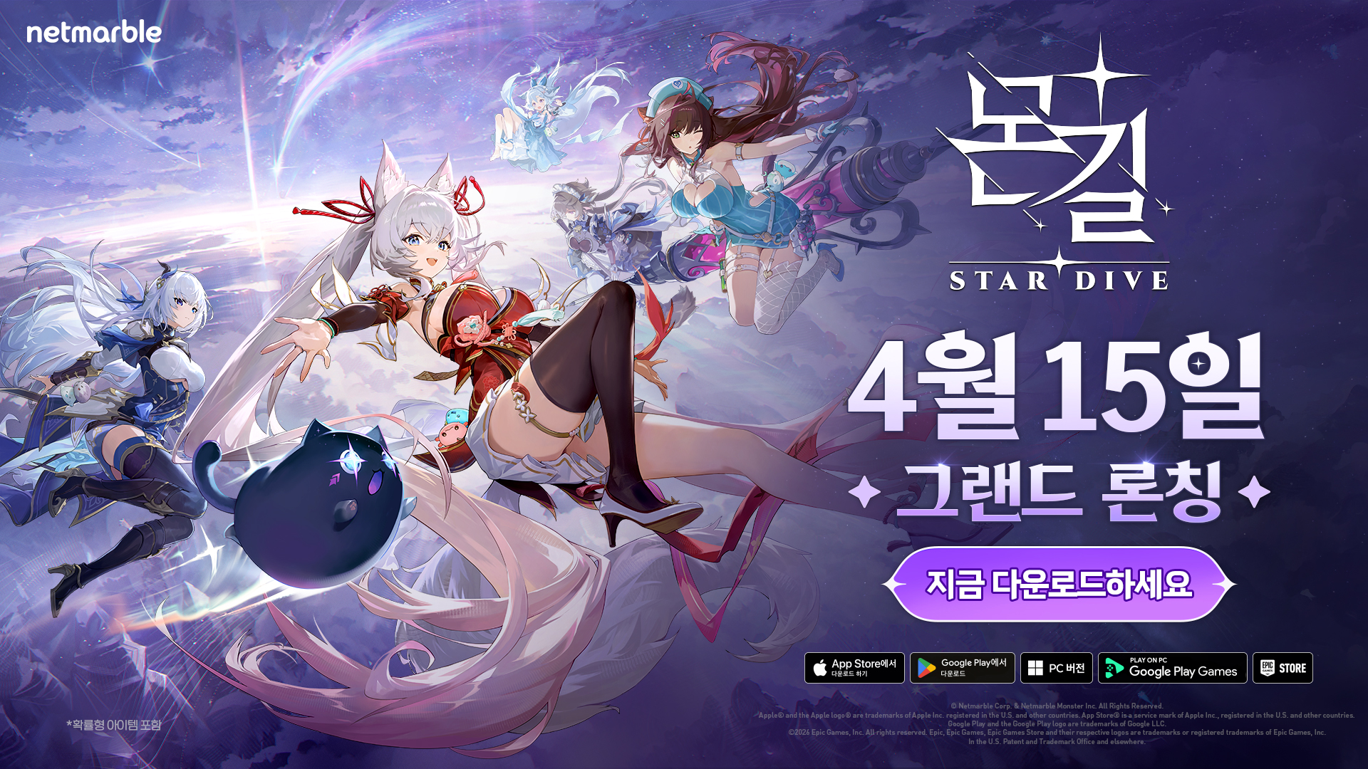 이용자들은 오늘(15일) 오전 10시부터 구글 플레이스토어와 애플 앱스토어를 통해 <몬길: STAR DIVE>의 모바일 버전을 플레이할 수 있으며, 에픽게임즈 스토어와 게임 공식 웹사이트(넷마블 런처)에서는 PC 버전 설치가 가능하다.