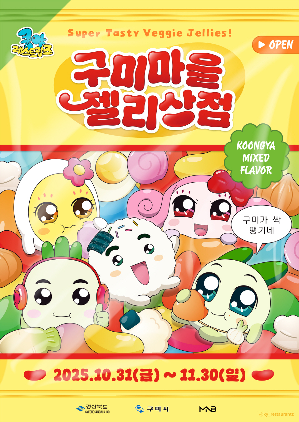 넷마블(대표 김병규)은 콘텐츠 마케팅 자회사 엠엔비(MNB, 대표 배민호)의 '쿵야 레스토랑즈'가 ‘대경선 로그온길 팝업페스타'에 참여해 <쿵야 레스토랑즈 구미마을 젤리상점>을 운영한다고 31일 밝혔다.