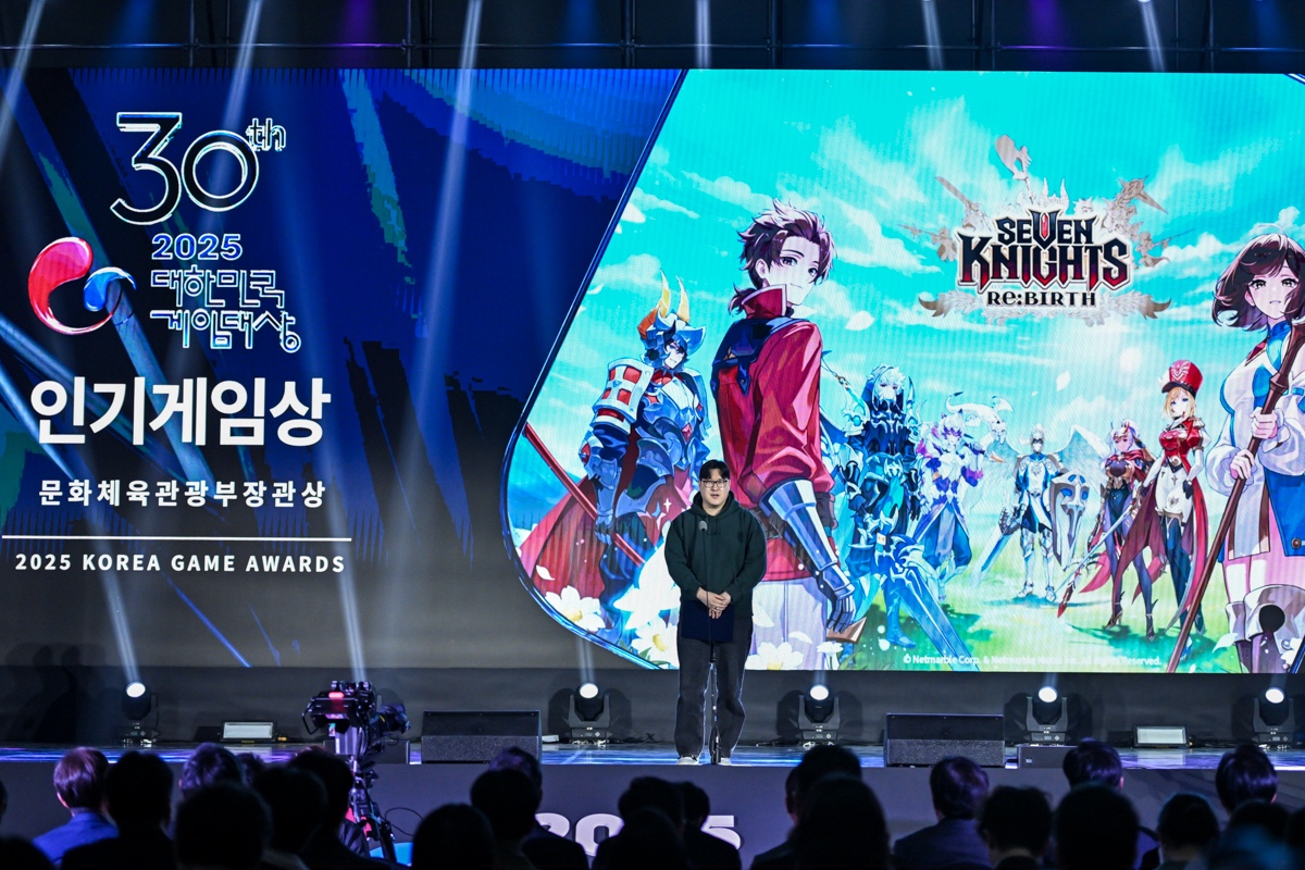 지난 12일 부산 벡스코에서 열린 2025 대한민국 게임대상 시상식에서 넷마블은 수집형 RPG ‘세븐나이츠 리버스(개발사 넷마블넥서스)’, MMORPG ‘RF 온라인 넥스트(개발사 넷마블엔투)‘가 우수상·인기 게임상과 우수상을 각각 수상하며 3관왕을 달성했다.